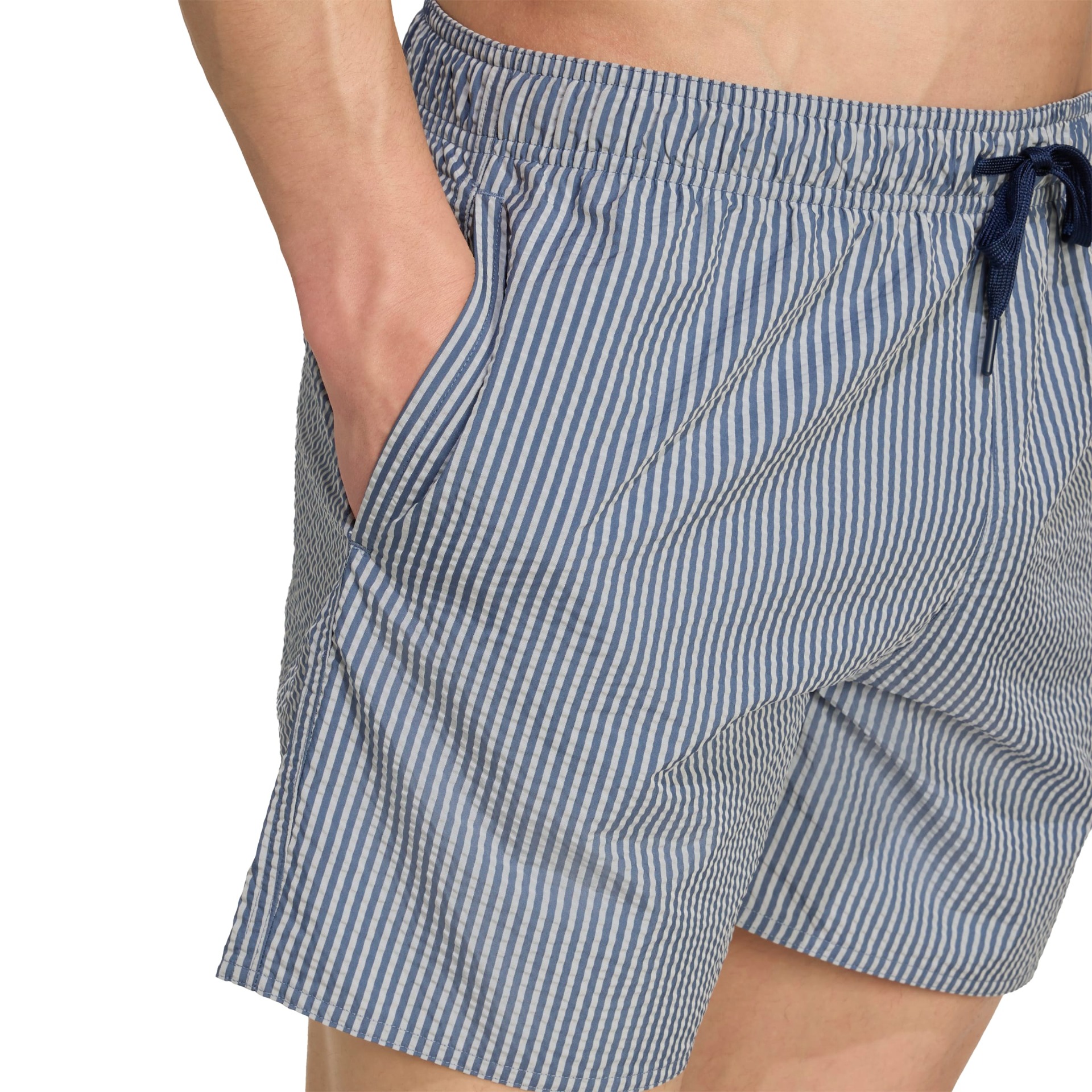 Summer mode: On. Φόρεσε το ανδρικό μαγιό βερμούδα adidas Seersucker Stripy 5-Inch και μην αφήσεις καμία στιγμή ανεκμετάλλευτη! To ανδρικό μαγιό βερμούδα διαθέτει ελαστική μέση με κορδόνι για τέλεια εφαρμογή και ανάλαφρο ύφασμα που στεγνώνει γρήγορα. Λιτό, κομψό, iconic.