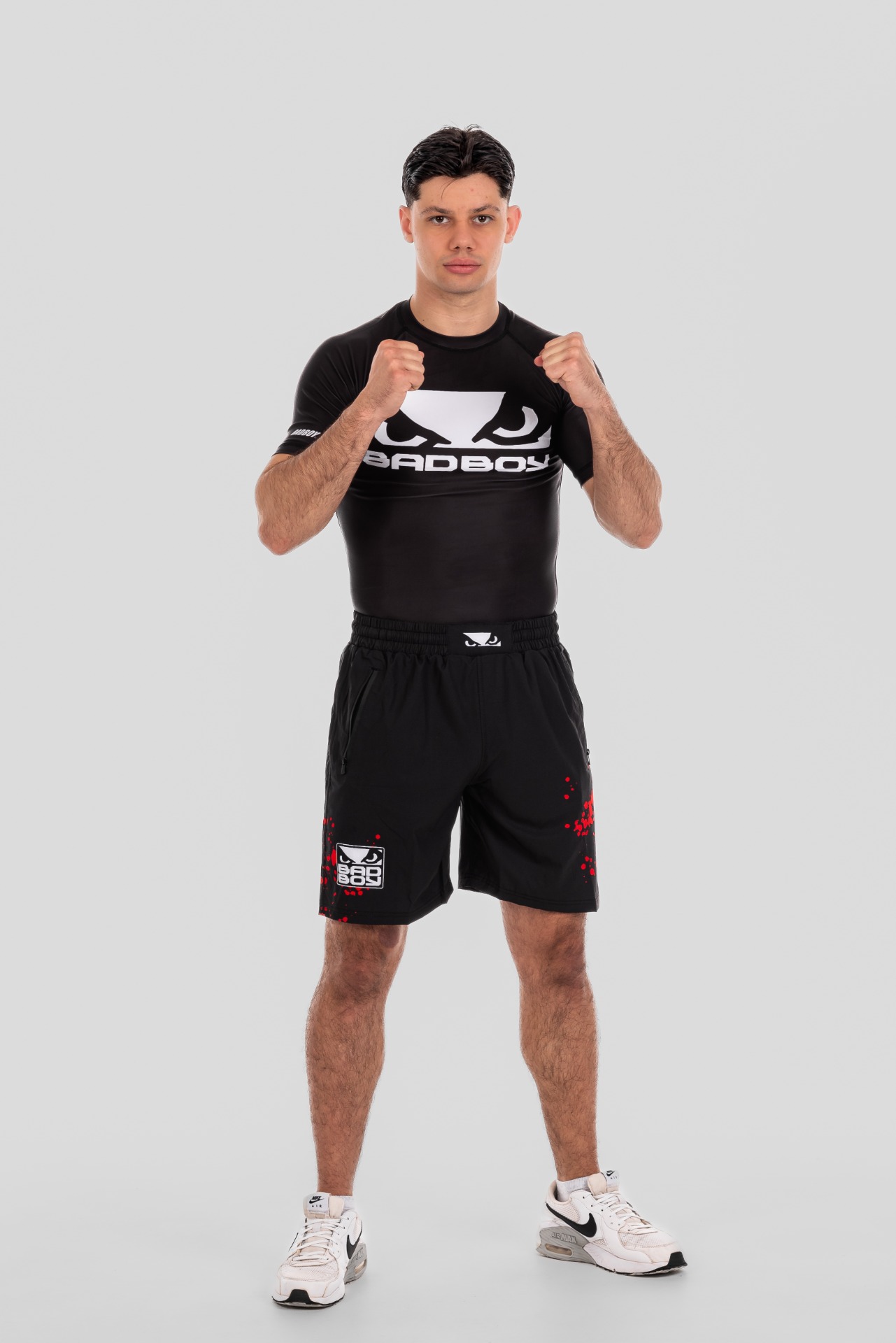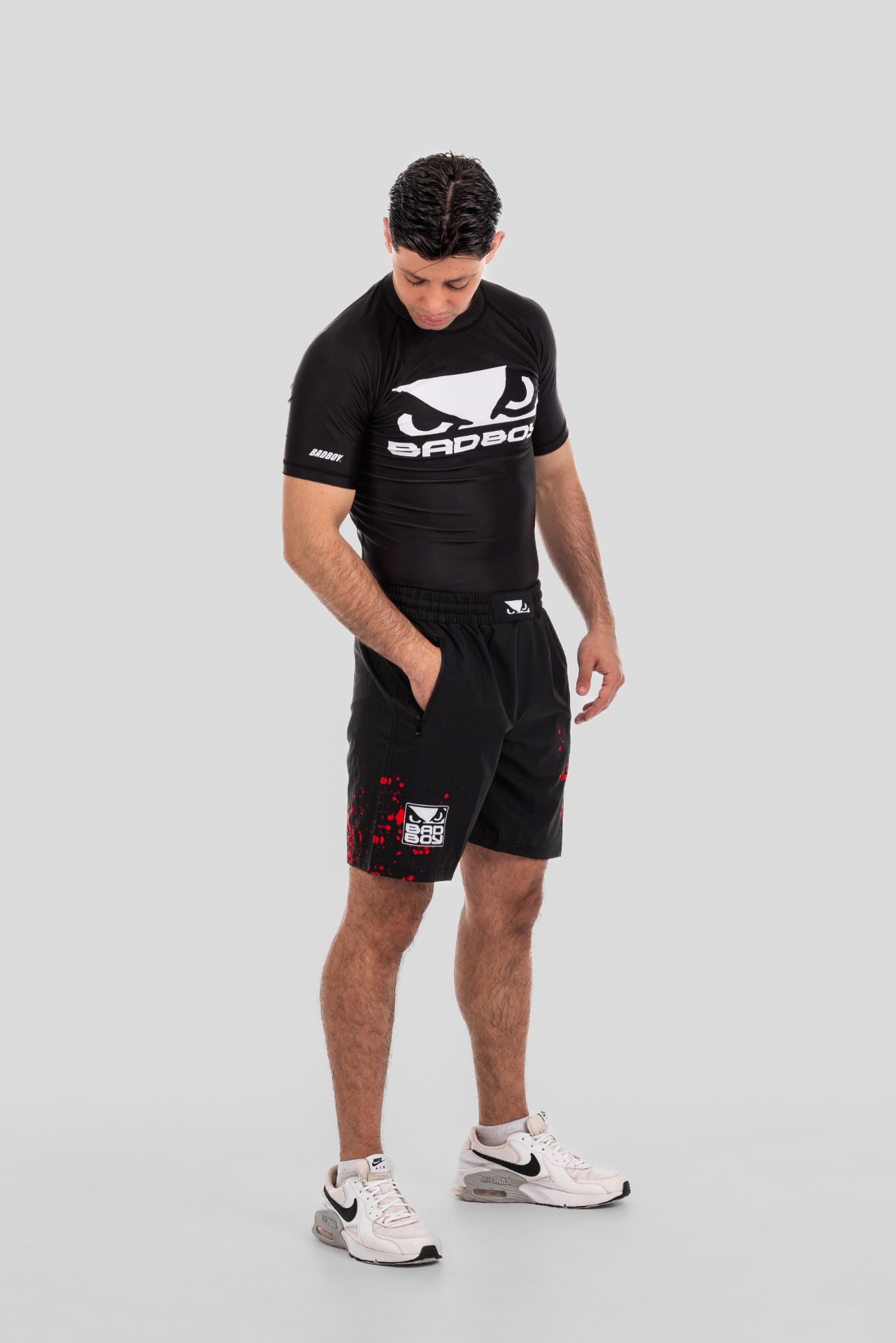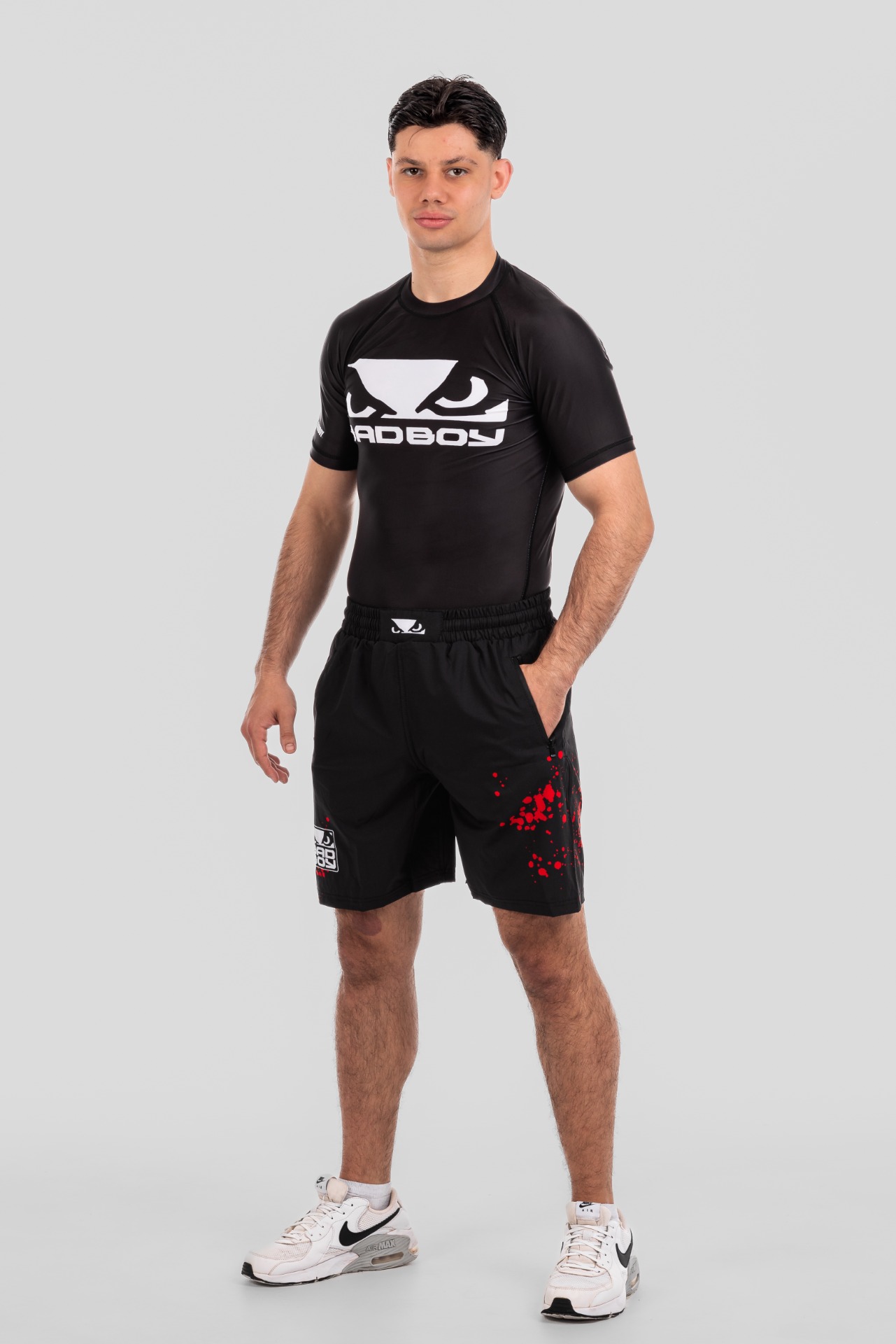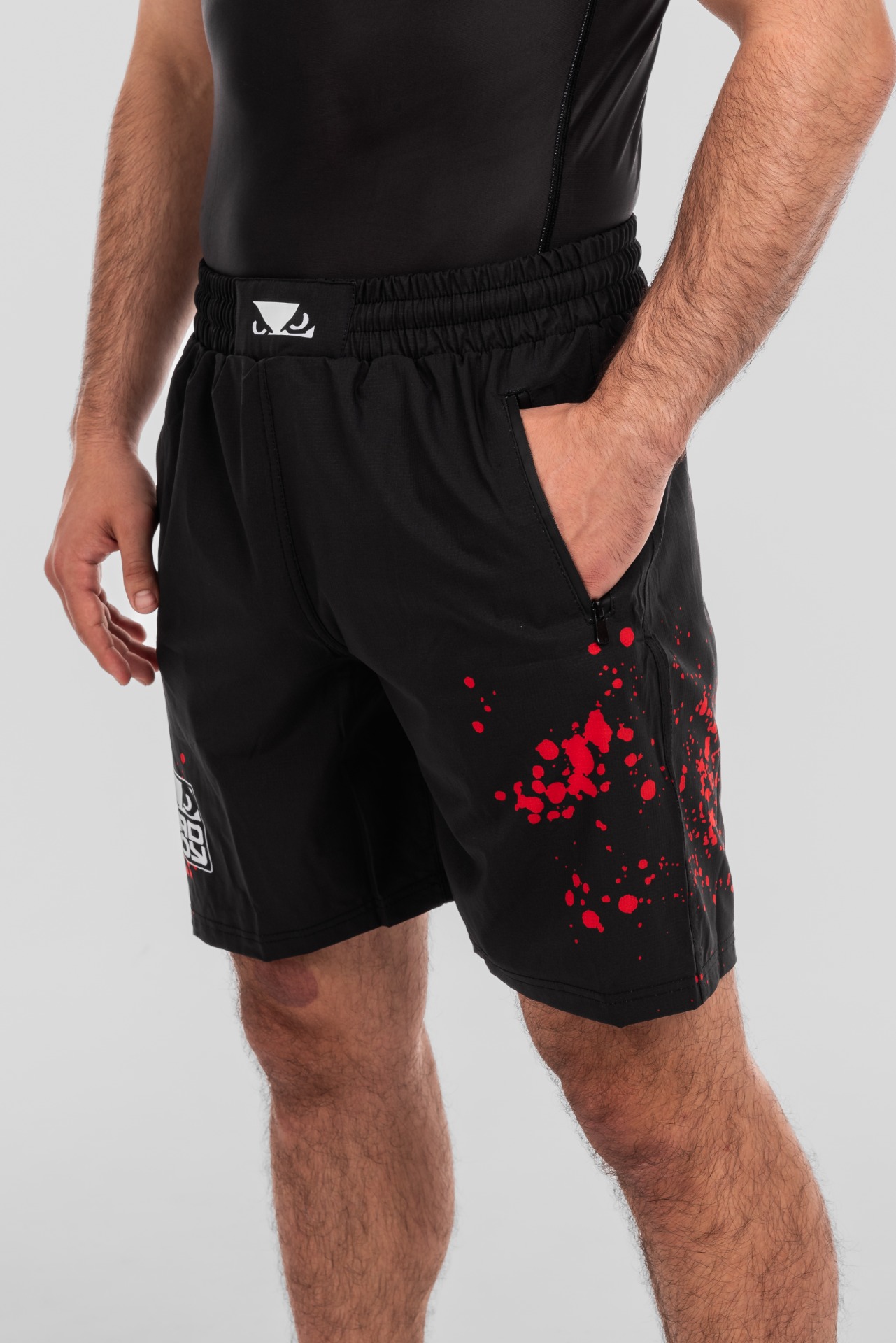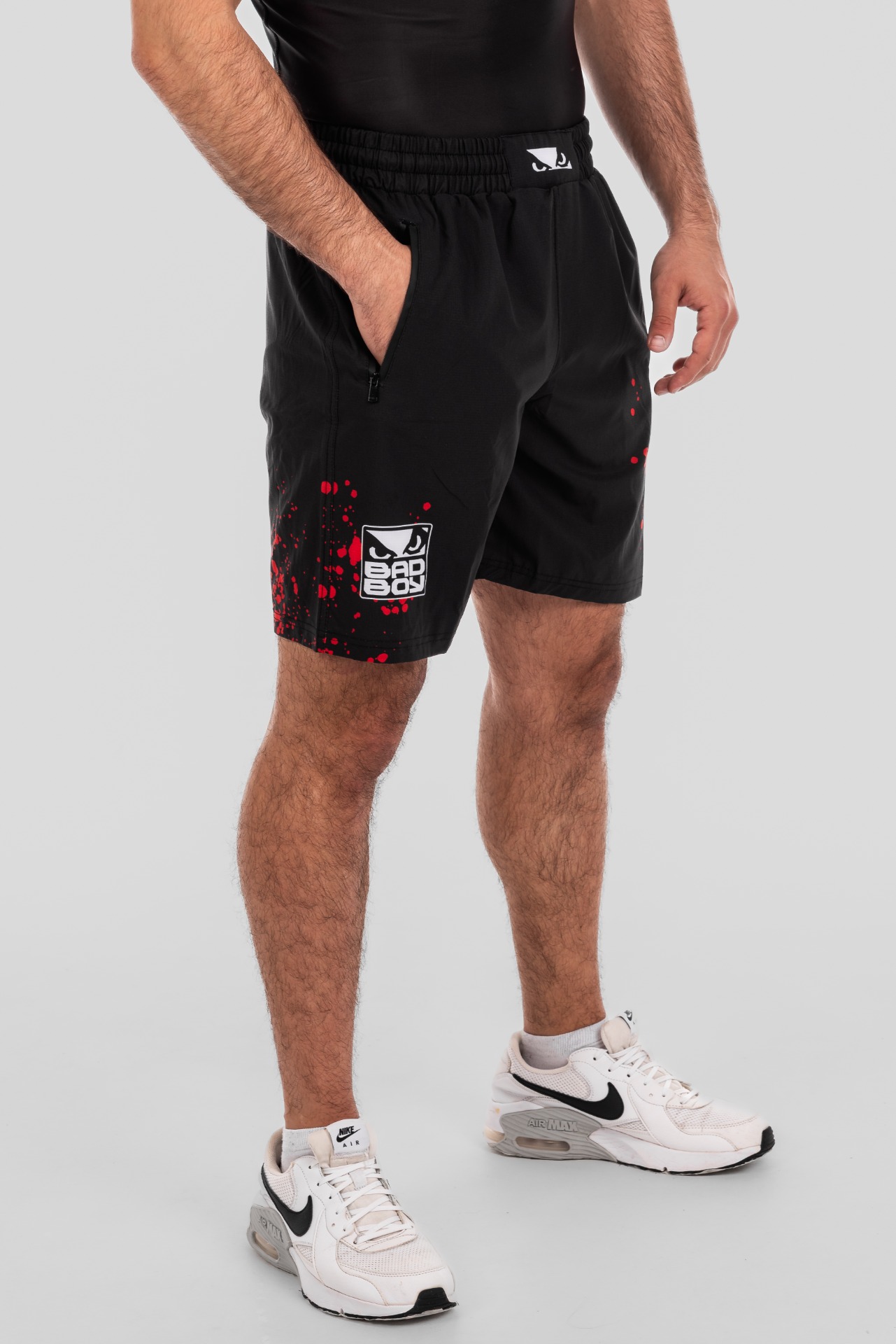BAD BOY TRANING SHORTS SPLATTER ZIPPED POCKETS BB-000077-BWR Black