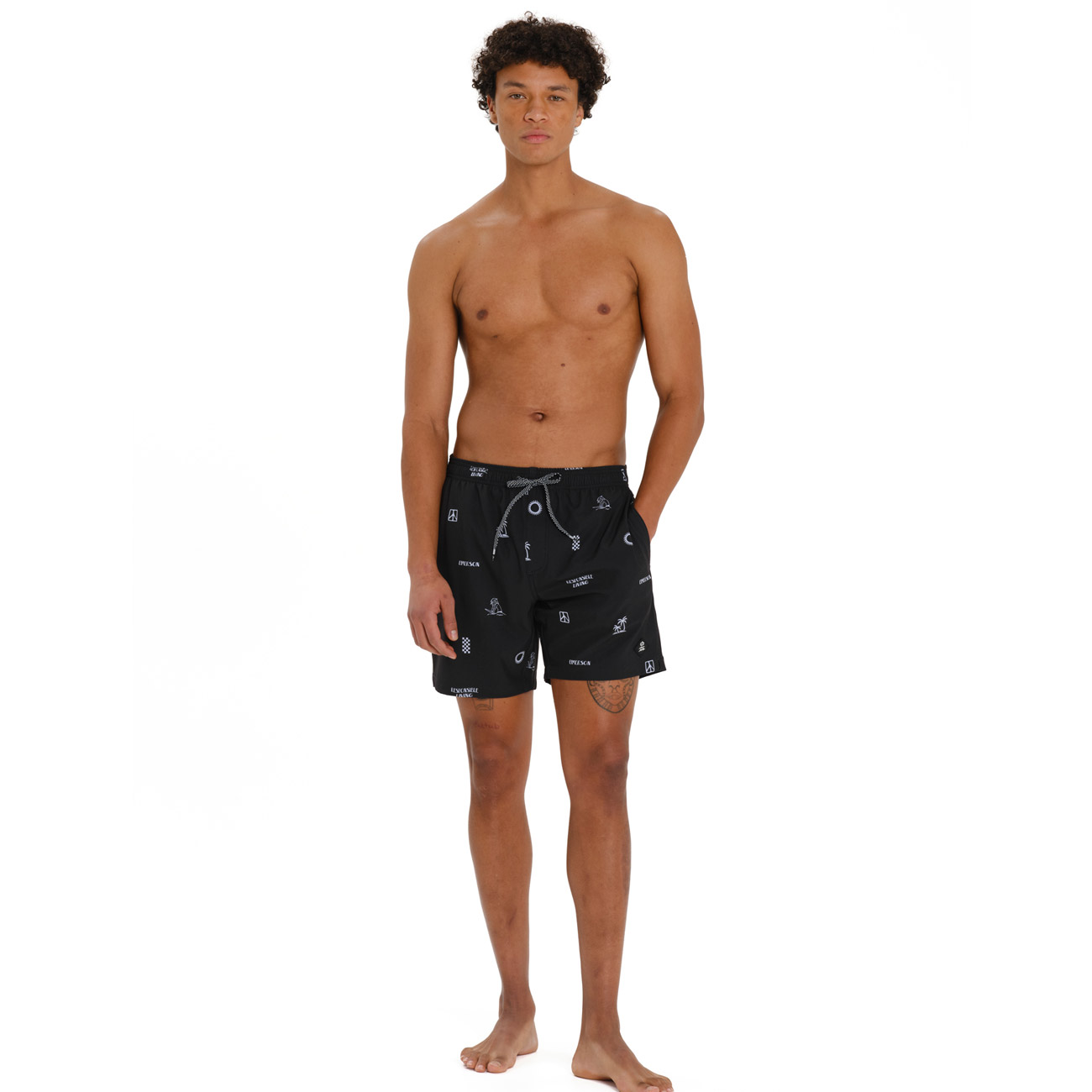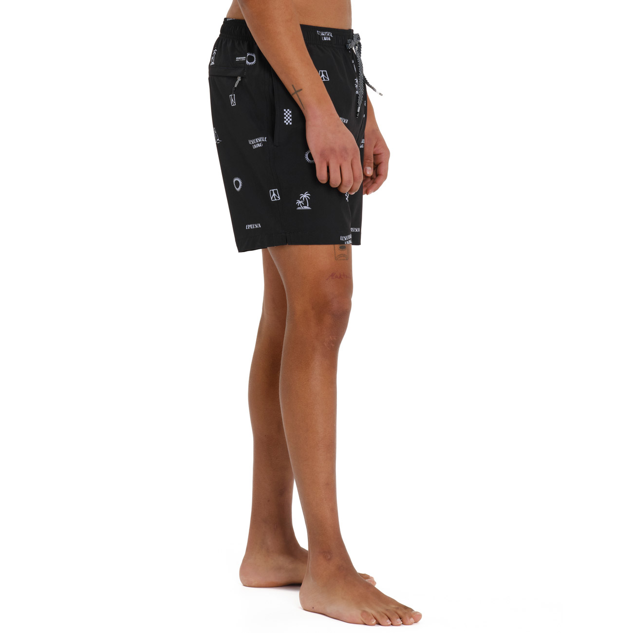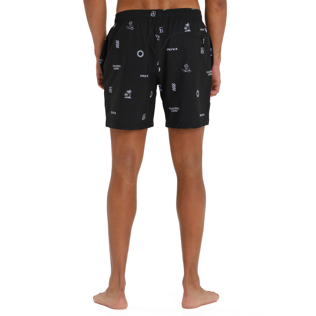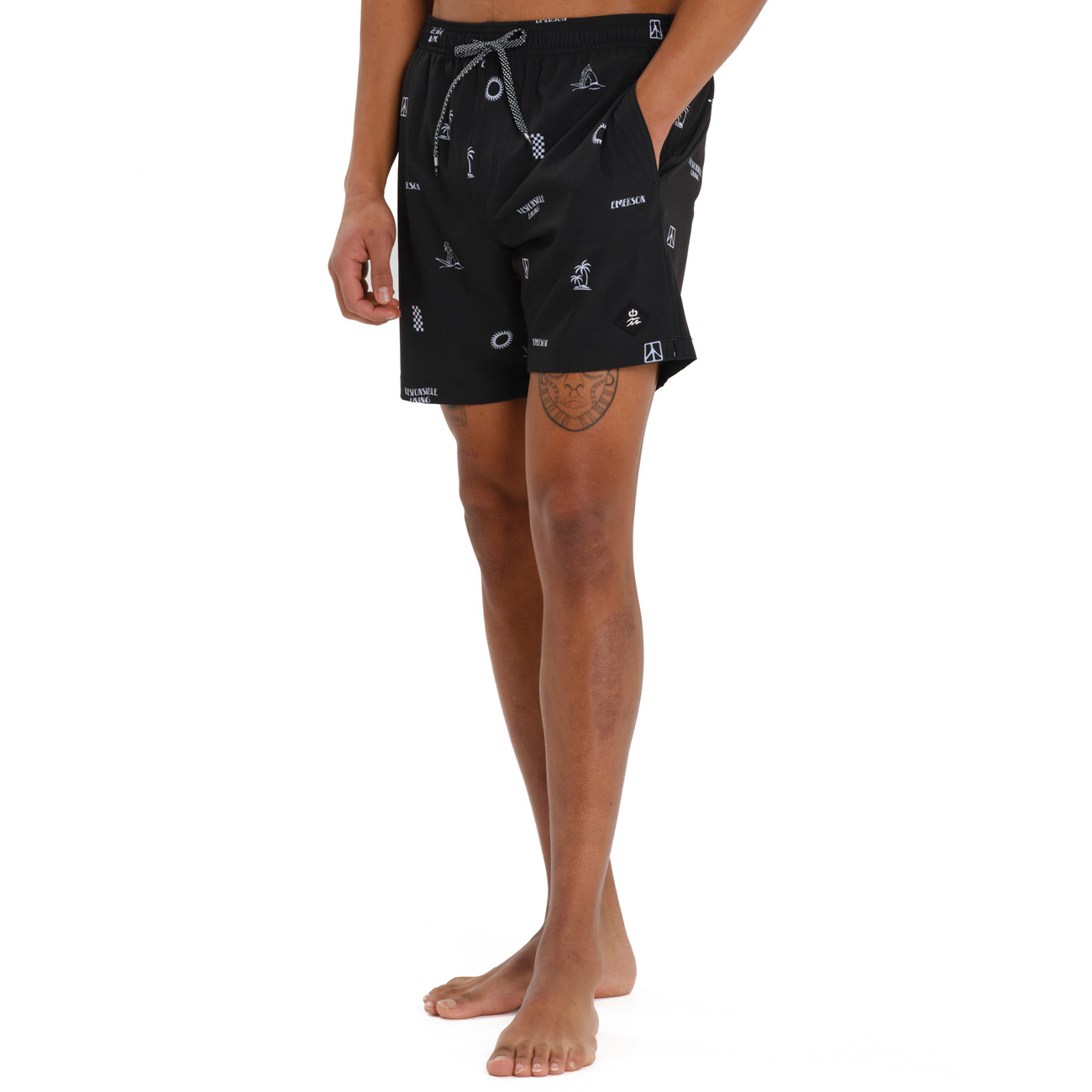 Put on the EMERSON men’s swim shorts and you won’t want the day to end! The men’s swim shorts feature an elastic waistband with a drawcord and four-way stretch fabric that dries quickly. Make them yours and add style to every splash and confidence to every look.