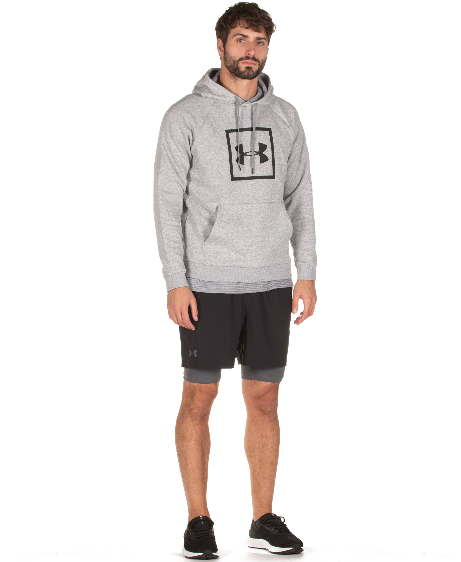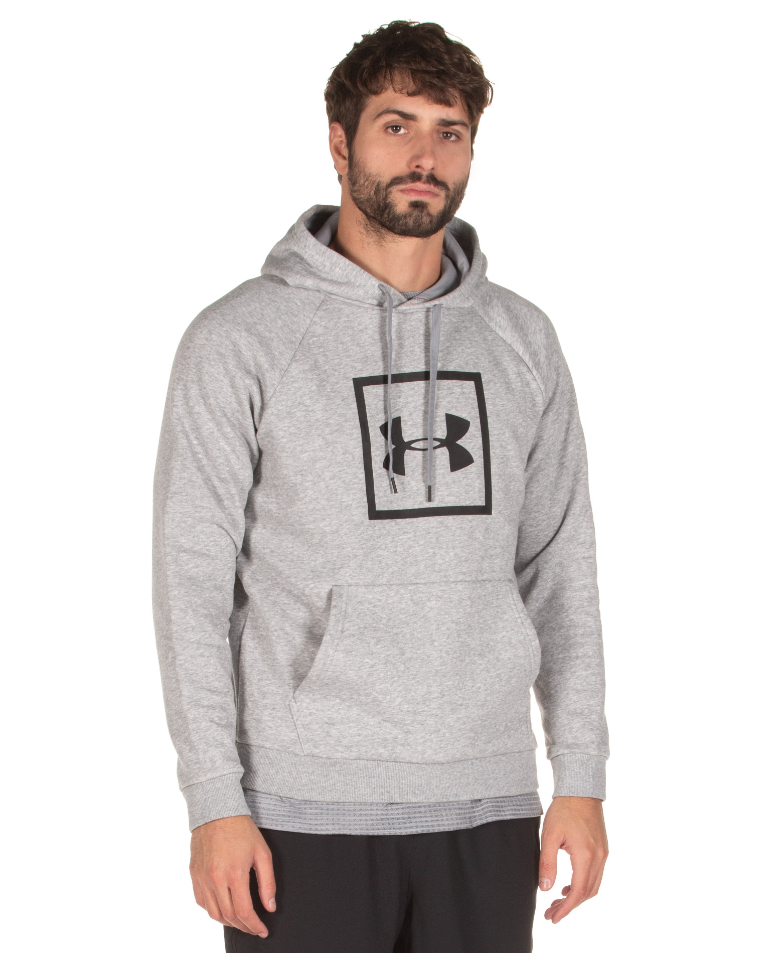 UNDER ARMOUR RIVAL FLEECE BOX LOGO HOODIE 1329745-035 Grey