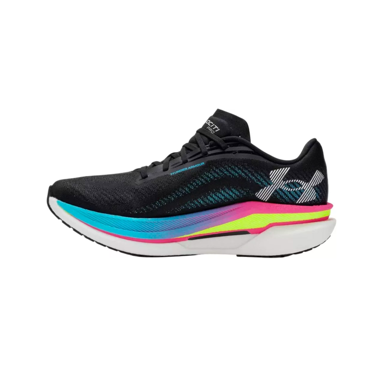 Go all out from the first to the final sprint with the unisex Under Armour Velociti Pro 2 running shoes! These unisex running shoes feature a minimal upper construction with stretchy Leno fabric for a secure, precise fit and a lightweight, highly responsive midsole that delivers powerful energy return. The built-in plate provides a snappy underfoot feel to help you hit top speeds.